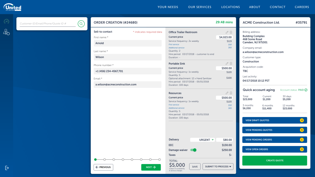 USS were a very manual company, a lot of the consultations were done manually on physical forms, there wasn’t a full integrated system managing and governing their clients, a lot of it was an on-call relationship client has with representatives of. Regrettably, pricing was often made up depending on the relationships and generally who picked up the phone. There wasn’t a system across the whole of the US to govern it all. There were often employees hired solely to transfer physical documents and scan and fill them into a system. It was a very broken way of working.