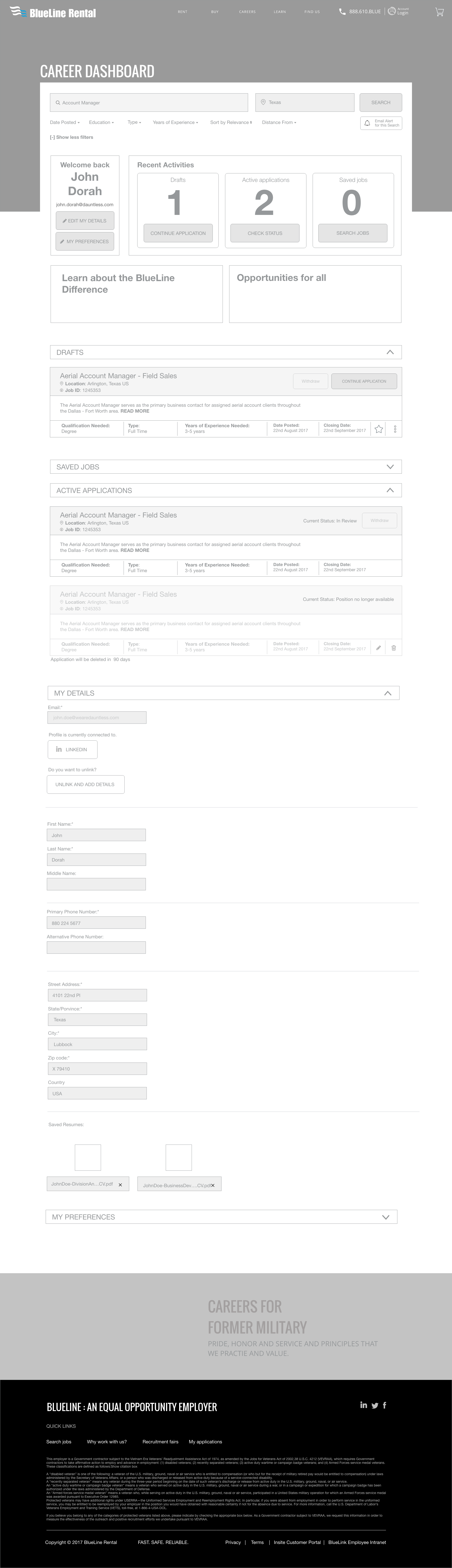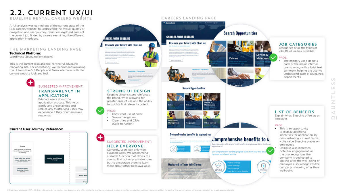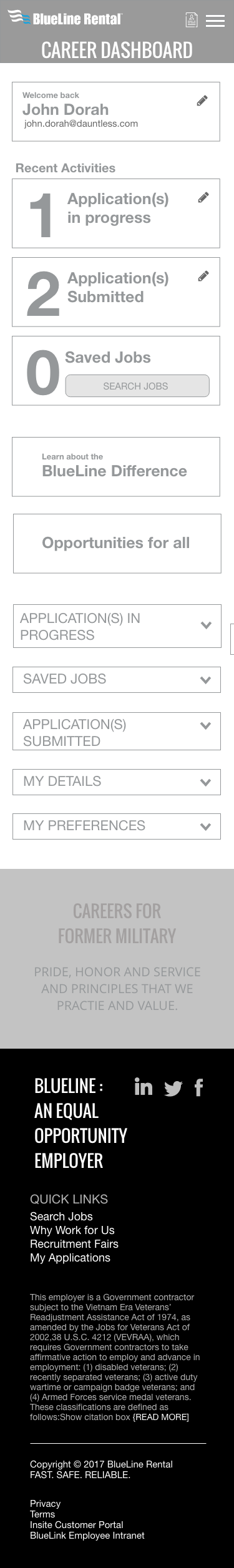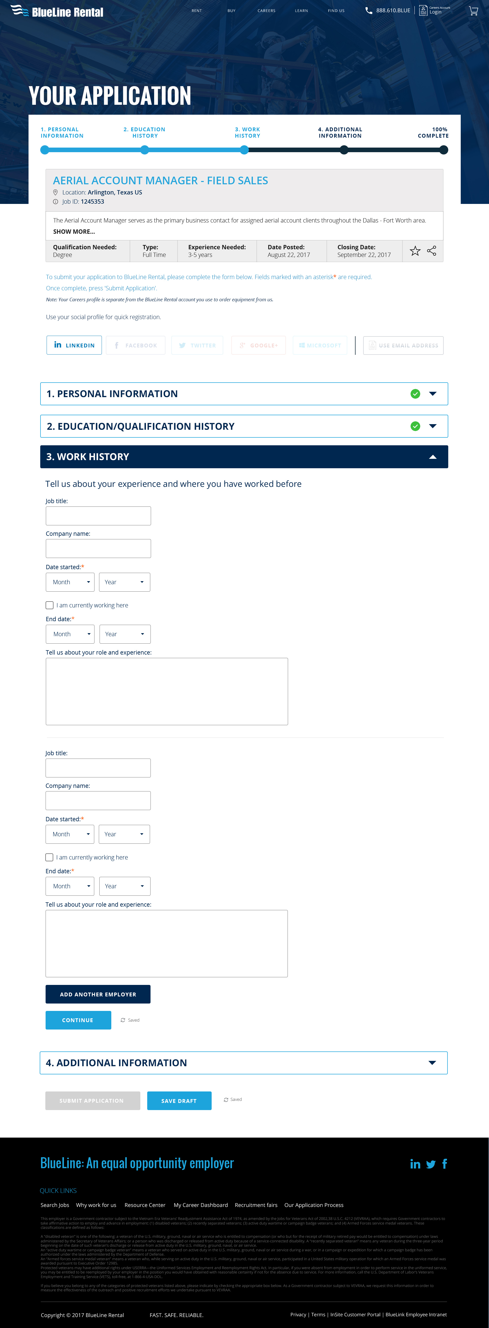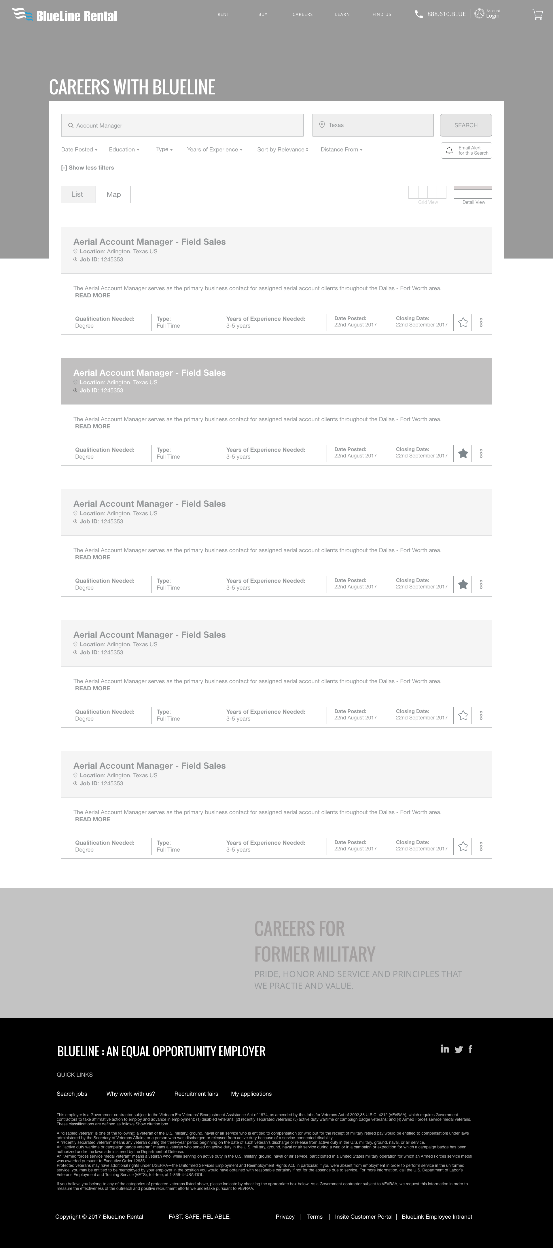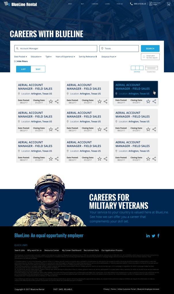 I joined Dauntless shortly after they launched & rebranded a new website and customer application for BlueLine Rental. As well as working on several marketing pieces for BLR. I came in for the relaunch of the Careers area of the site.