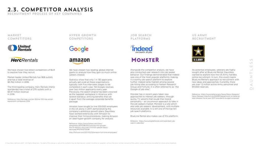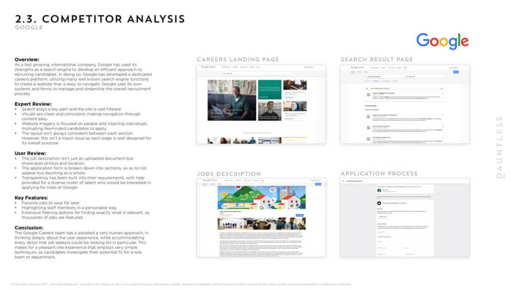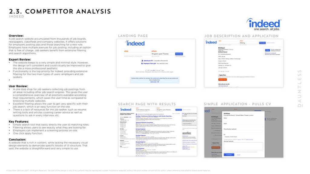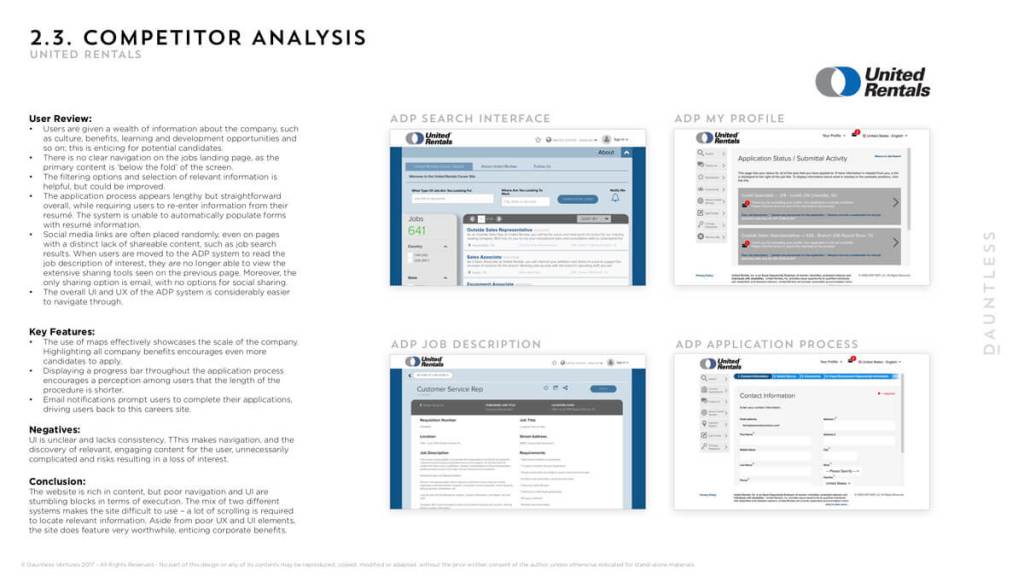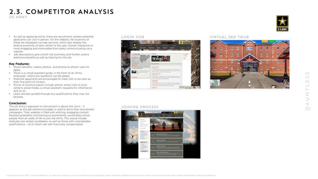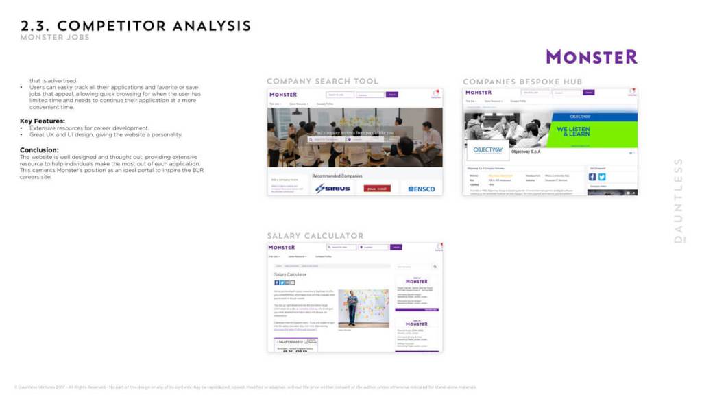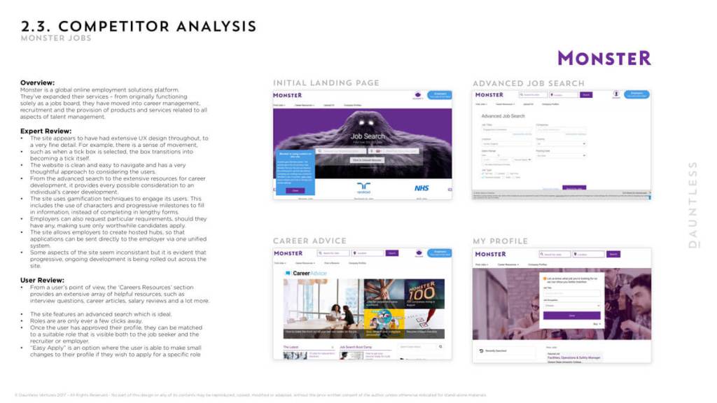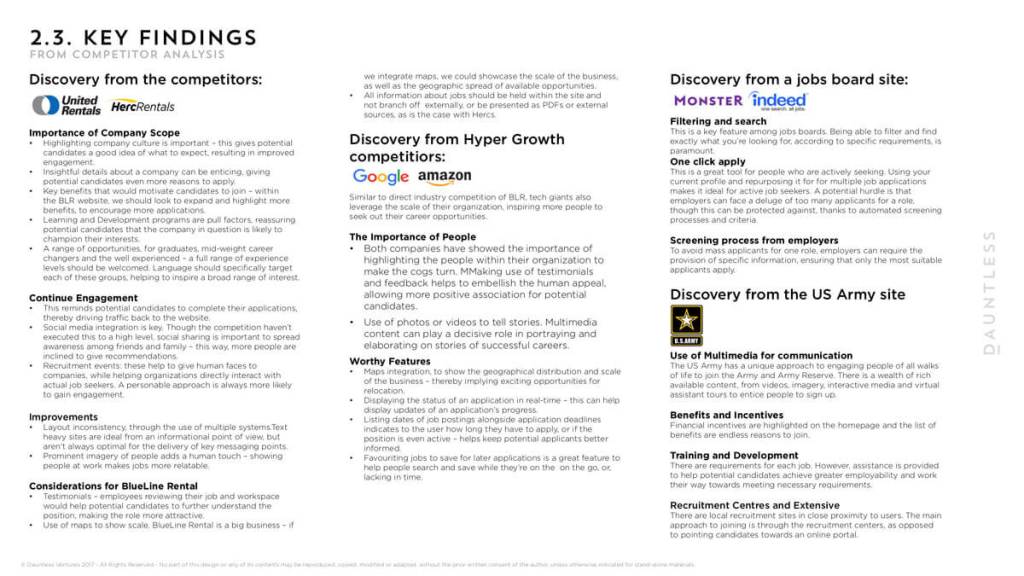 Uncovering all areas of competitors helped to highlight areas of importance and denounce areas of irrelevance to help strengthen the user journey proposal.