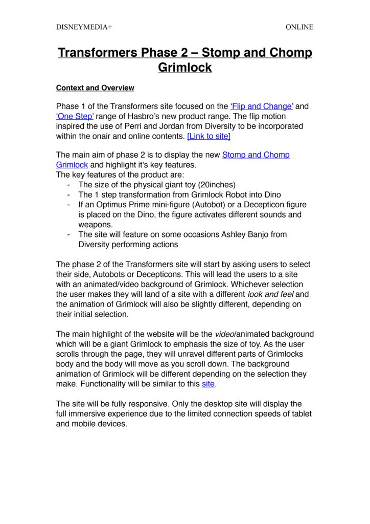 To celebrate the release of the new Transformers Grimlock Toy. Hasbro teamed up with Disney to create a promotional campaign across TV, and Digital website and media.
