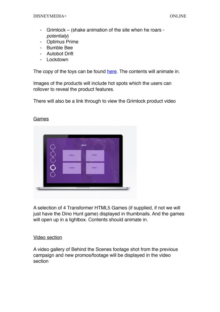 I lead the direction of the background video produced working with an external agency to create the background 3D Grimlock video. I set up exactly what was needed at each interval. I worked with a web developer to make sure the ‘sections’ align up with key areas of the product on the background video.