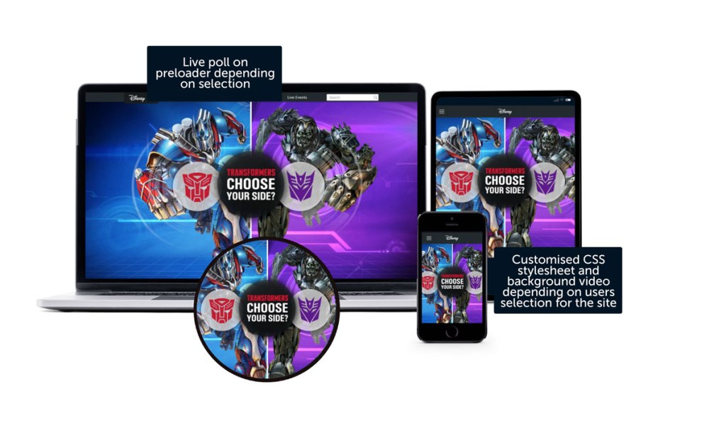 We also integrated a live poll into the site of how many users chose Autobots and how many chose Decepticons.