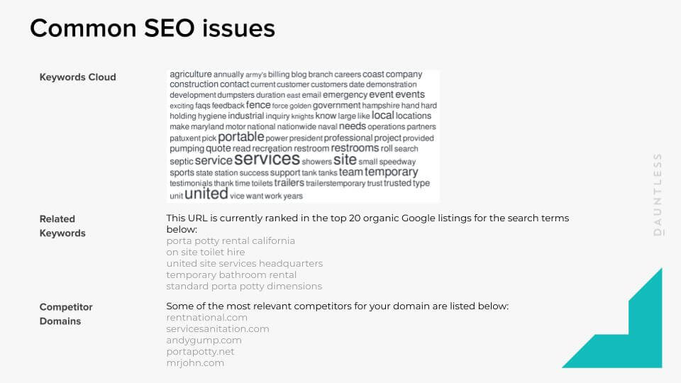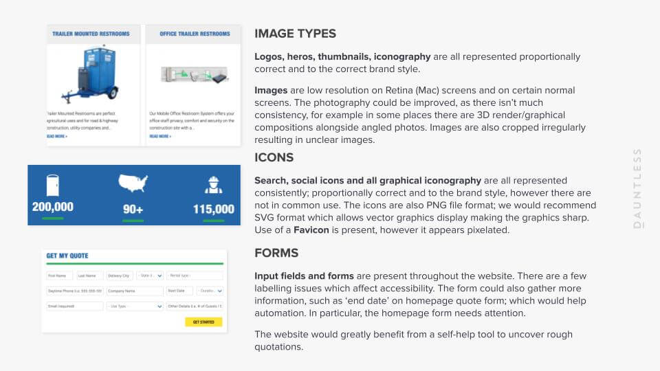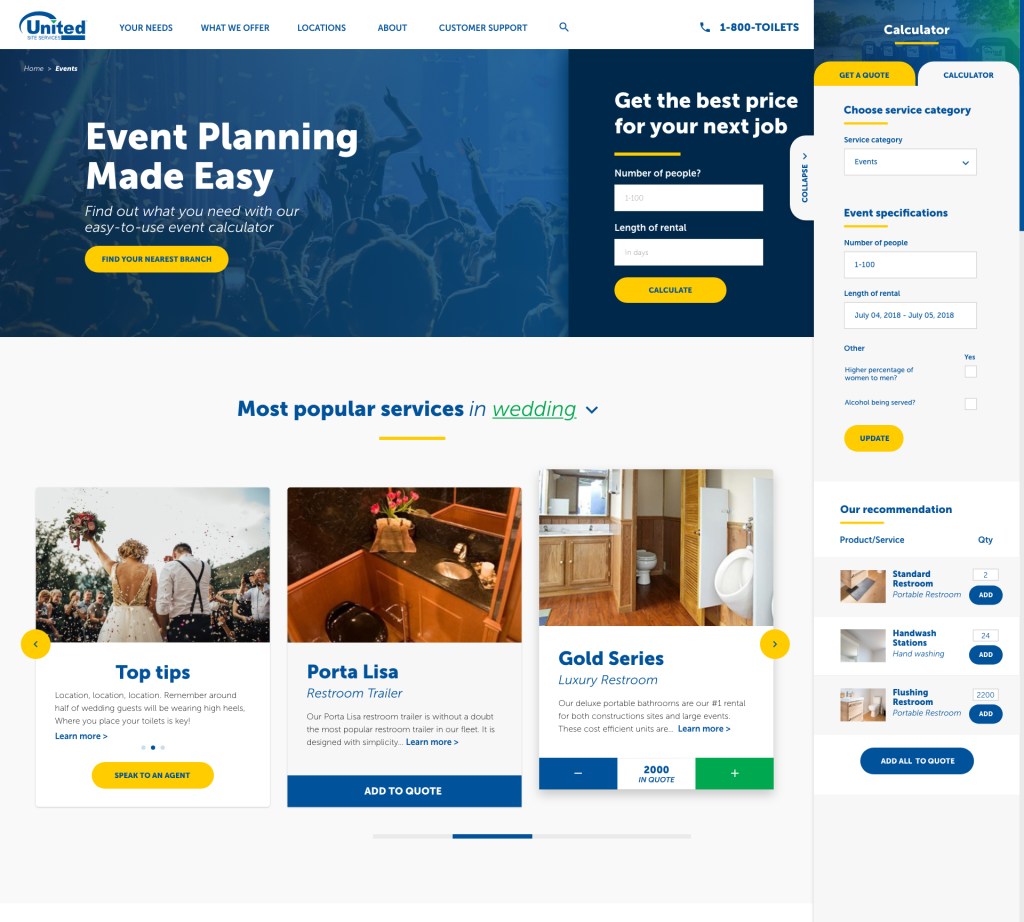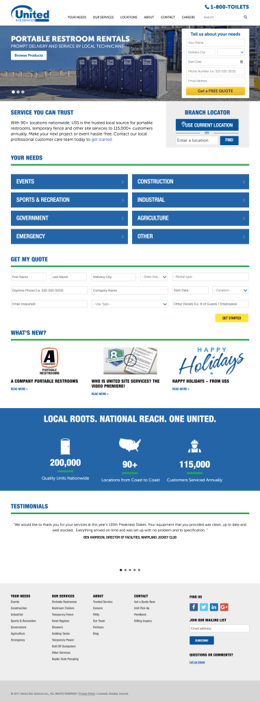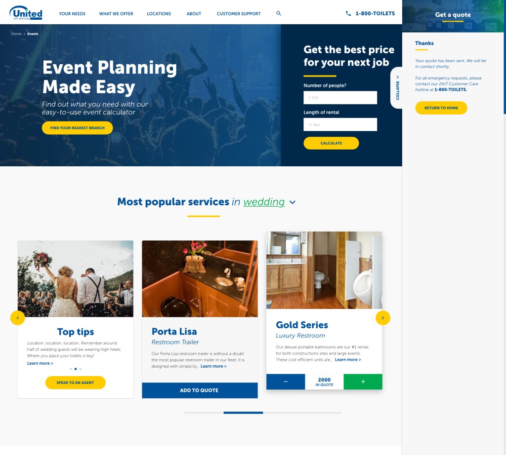 The former website was dated, without much direction or a sense of purpose. There were several ‘get a quote’ features without clarity on what was going on. There was a lot of repeated content. Within the search features – which is a key area user used blog posts were predominantly ranking higher than sales/information posts .e.g. searching for “toilets for events”.