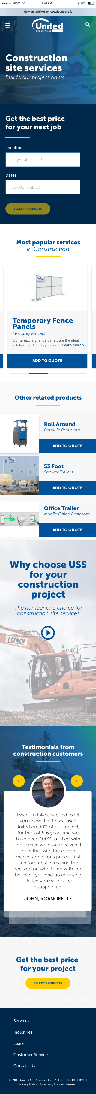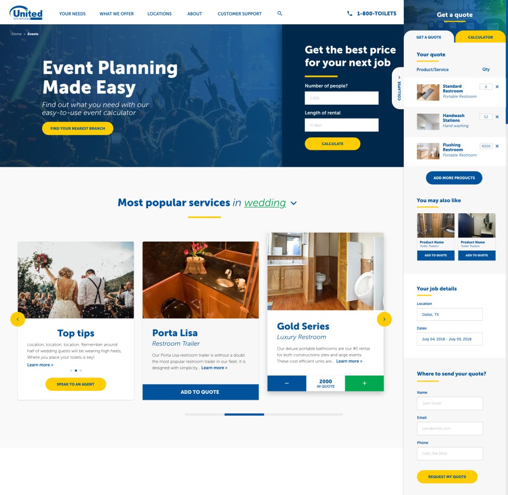 We know users are familiar with an e-commerce websites online so we tried to showcase a familiar e-commerce type of experience so users felt like they were shopping and knew exactly what they were requesting a quote for.