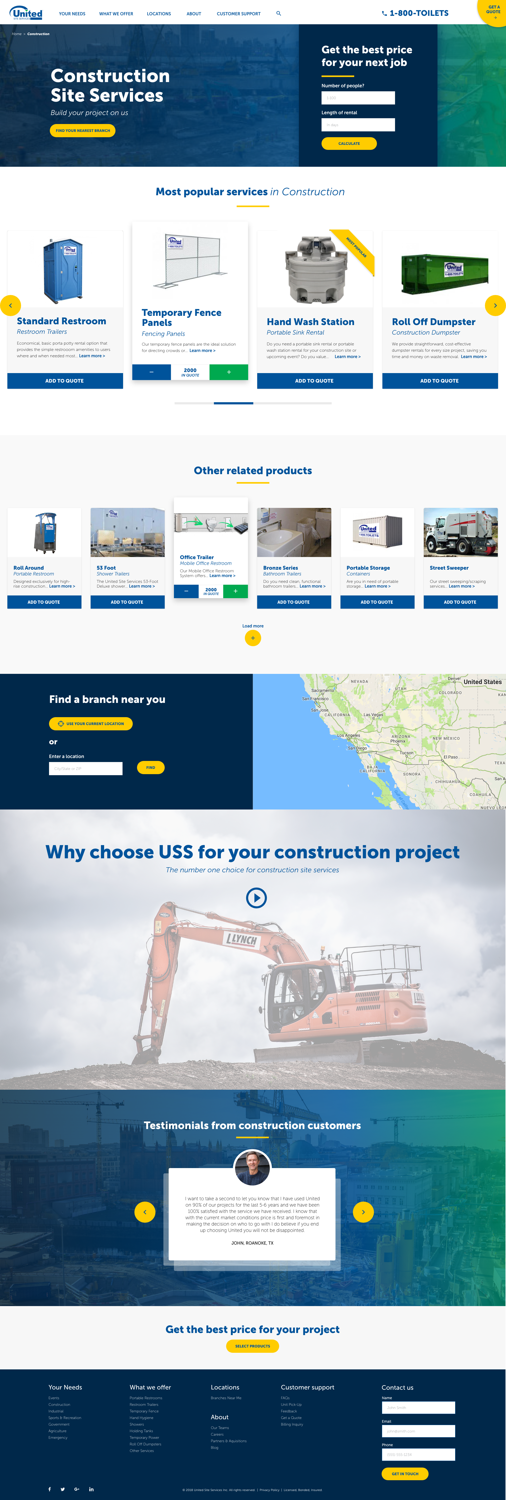 We had landing pages for the core industries with targeted & relevant content. Below is an example of the construction homepage.