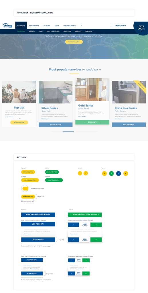 We wanted ‘Get a Quote’ to be consistent and the same throughout the site – it was a floating bubble on the site to the right-hand corner of the site on desktop and bottom right on mobile, to give it more prominence we expanded the bubble on hover (on desktop), and on clicking a roll outside panel opened out.